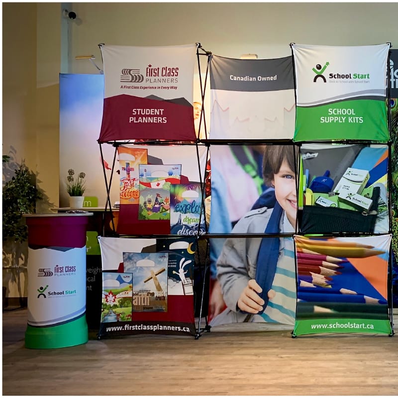 Easily swap-out or replaced individual graphic panels. The buttonhole attachment system makes graphic updates simple and affordable.