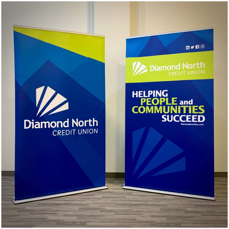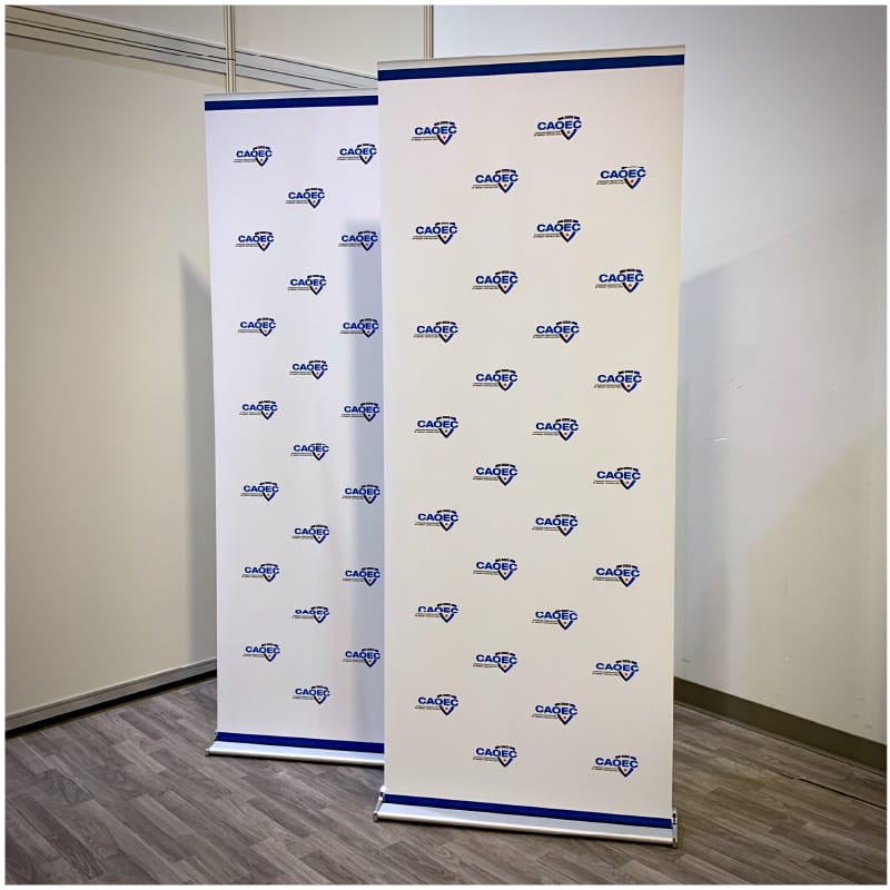 Double-sided retractable banner stand hardware. Padded carry bag icluded.