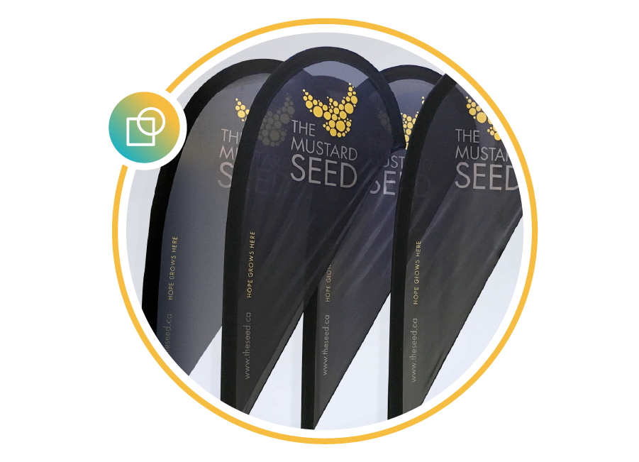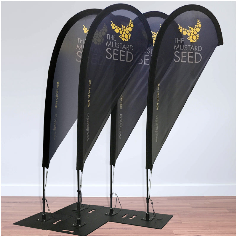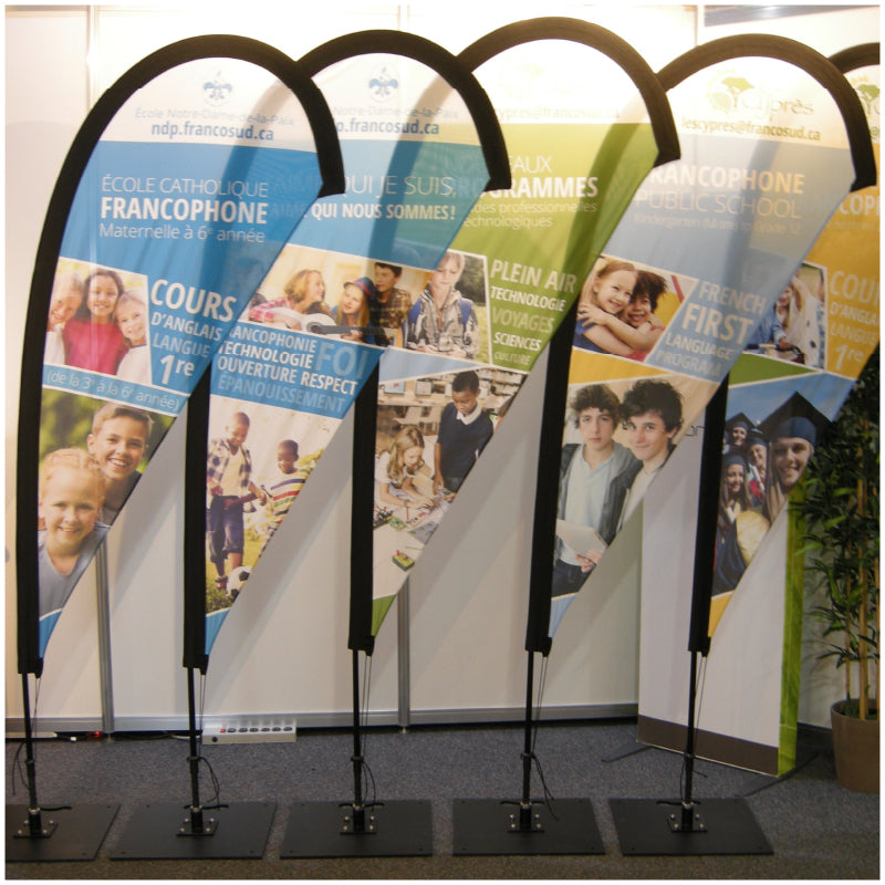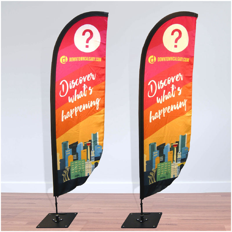 Flag Banners are perfect for trade shows, sporting events, festivals, fundraising events, storefronts, curbside pick-up and more.