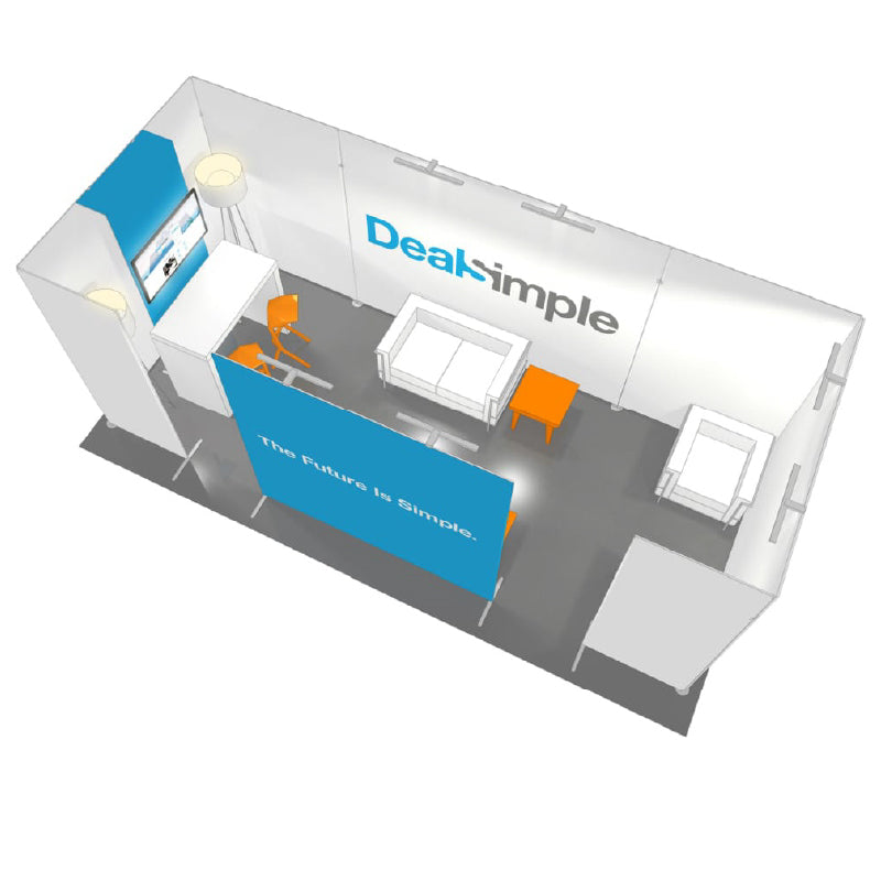 We generally start with simple 3D line drawing mock-ups to present a portable or modular solution that meets your needs in terms of your booth size/layout, functionality and budget.