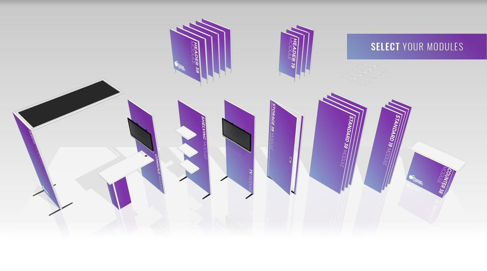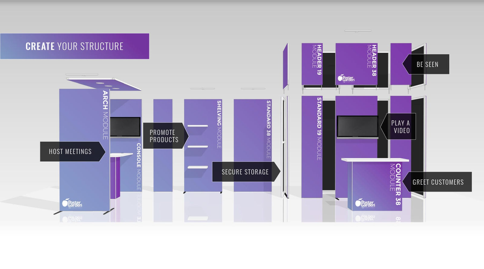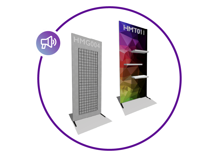 Get the look and features of a custom display without lengthy and costly installs. Perfect for trade shows, events, retail, showrooms, and more.