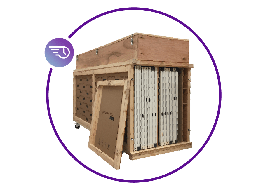 Set-up in record speed thanks to pre-assembled frames with your graphics already installed, neatly packed and ready to connect.