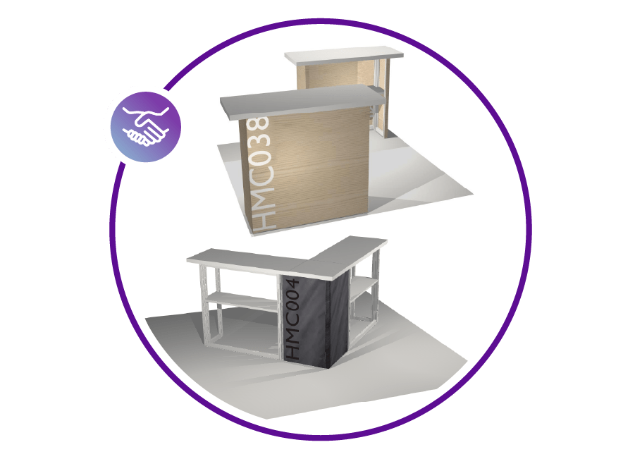 Personalize your configuration with over 30 accessories, including TV mounts, product shelving, meeting tables, reception counters, secure storage and more!