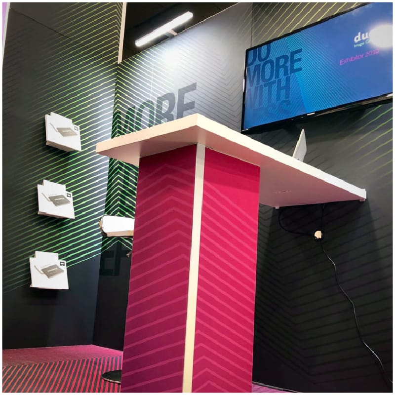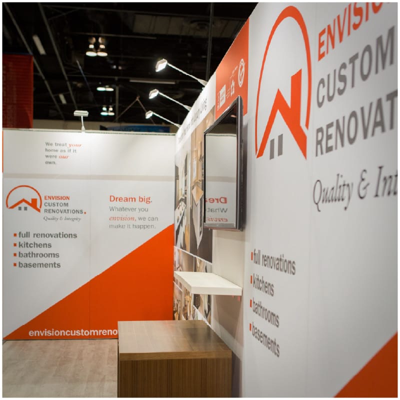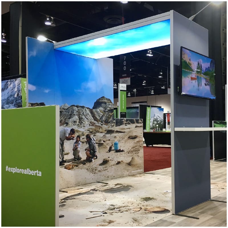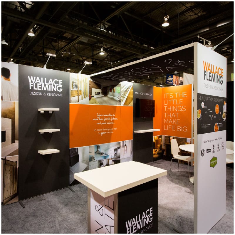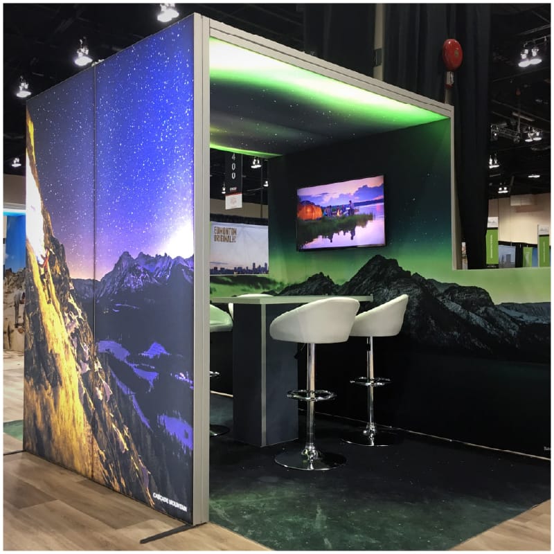 Without any visible hardware profiles between frames, 100% of your booth’s surface is dedicated to your graphics & messaging.