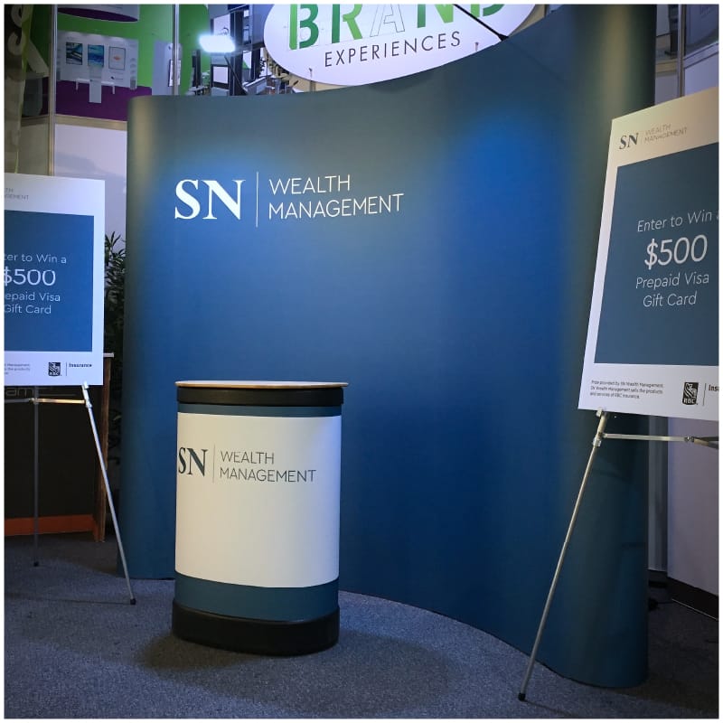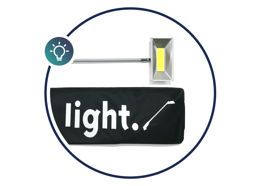 Modern silver LED spotlights ensure that your message stands-out. Convenient padded bags included to safely pack them with your display.