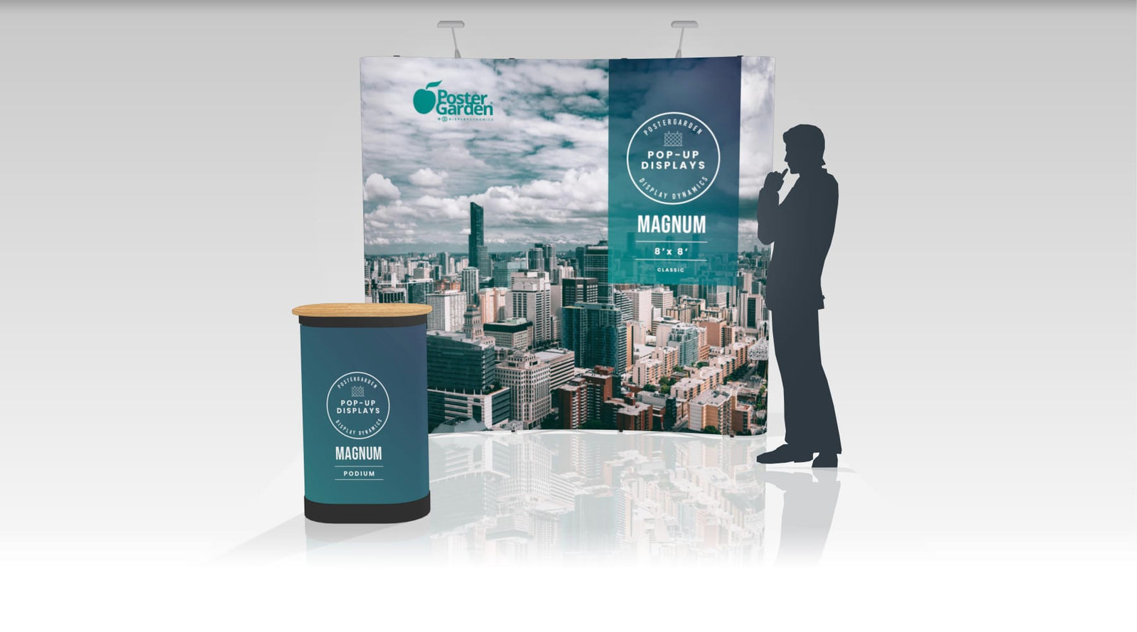 Using the power of rare earth magnets, the Magnum's sturdy frame and magnetic hardware components make it one of the easiest classic style pop-up displays to set-up and dismantle. The latex printed and scuff & scratch resistant laminated rolled graphic panels offer the highest resolution with bright, vivid colors.