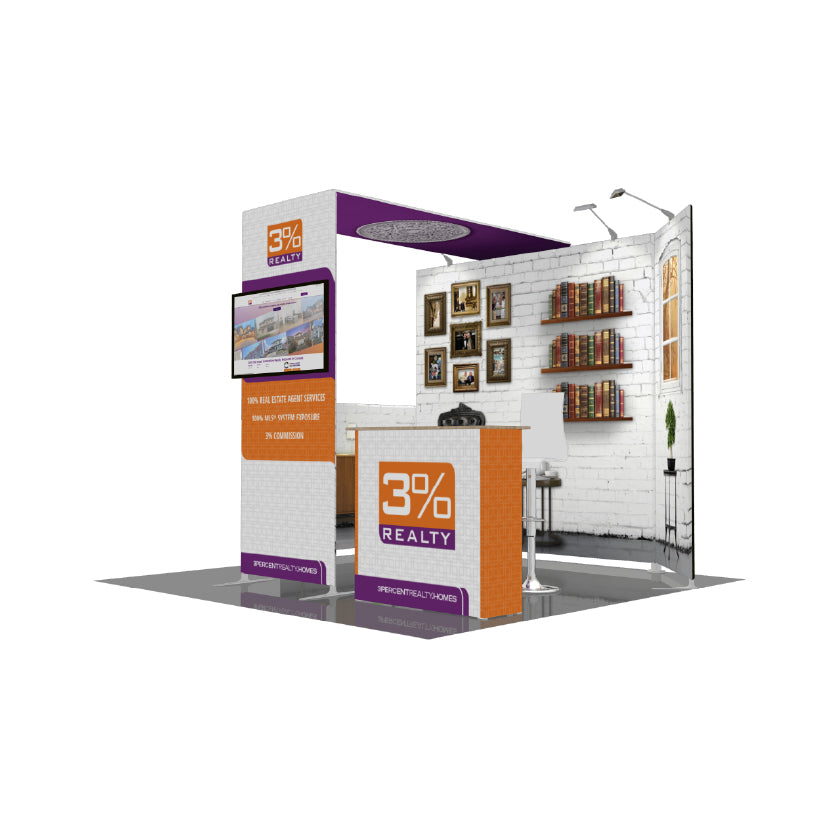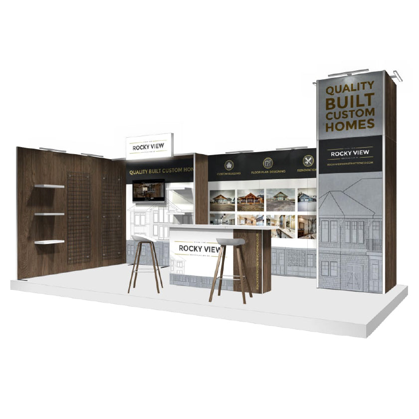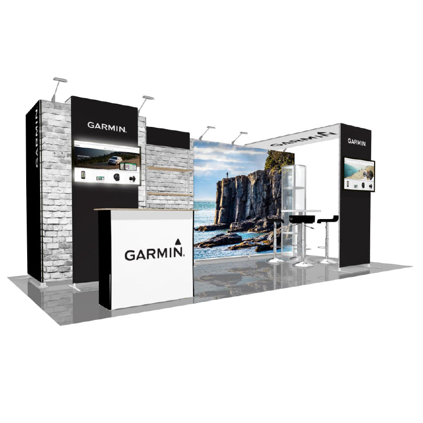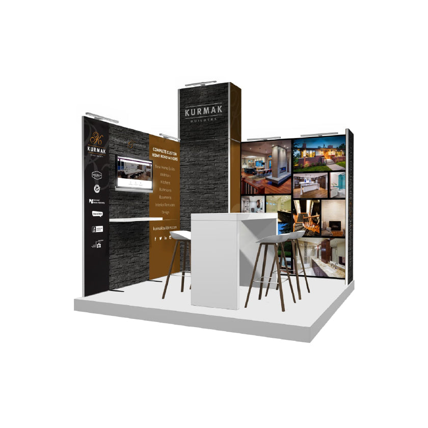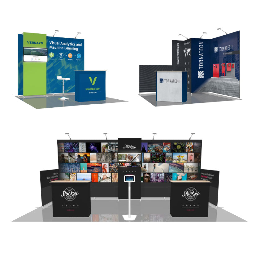 Browse our collection of pre-designed portable Contour booth solutions for 10' x 20' spaces.