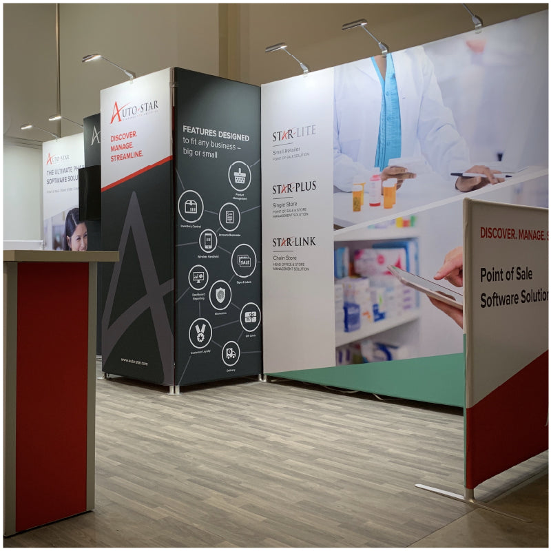 Once your artwork proof is approved, you can expect swift production on most Contour and H-line booth solutions: