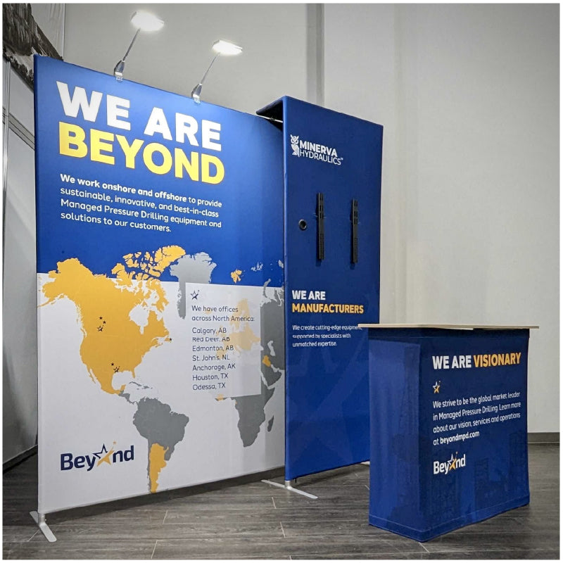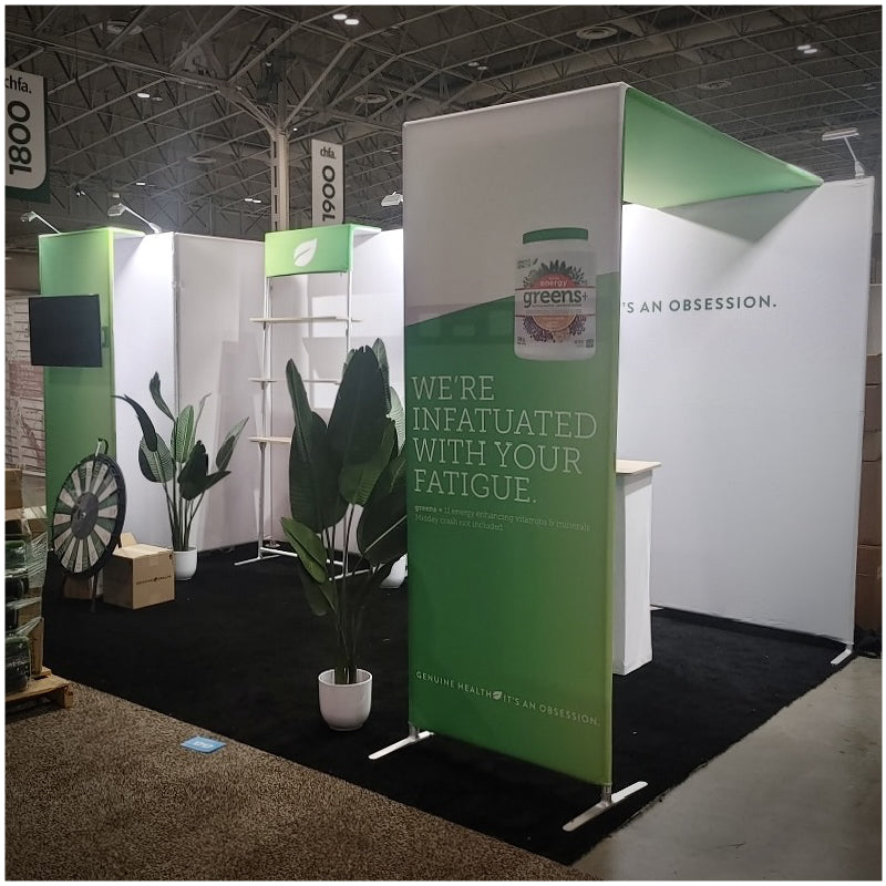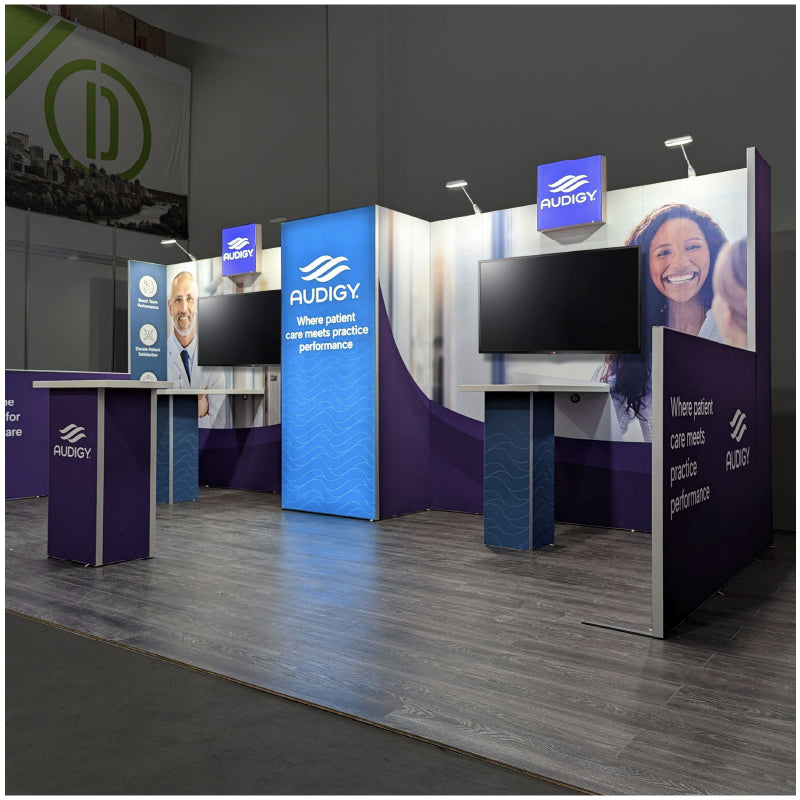 Absolutely! With our H-line booth rentals, you get all the perks of a custom exhibit without the hassle of storage or shipping. Enjoy a fully personalized booth configuration complete with vibrant, branded fabric graphics, while accessing top-quality H-line hardware and accessories at about a third of the purchase price. It’s the perfect way to make a big impact — without the long-term commitment!