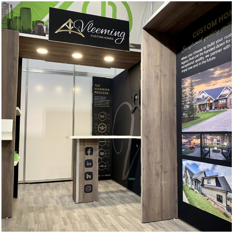Browse our collection of pre-designed modular H-line booth solutions for 10' x 10' spaces.