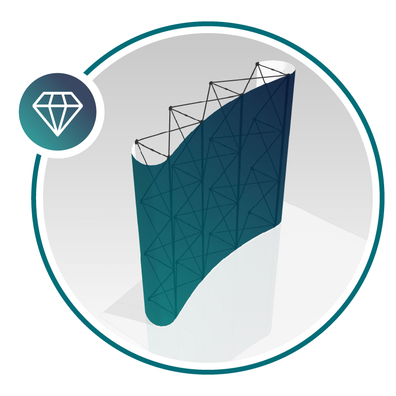 The curved ultra-portable fabric pop-up display