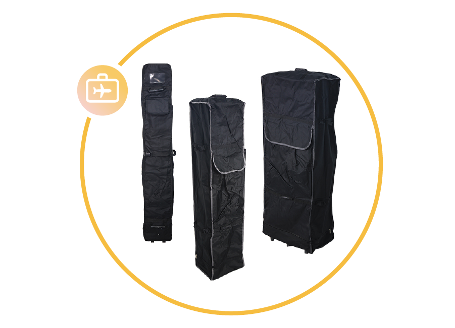 Your entire tent frame folds down to pack and transport into a single wheeled nylon case.