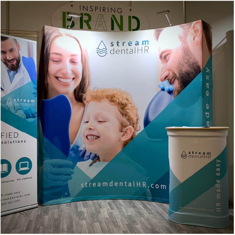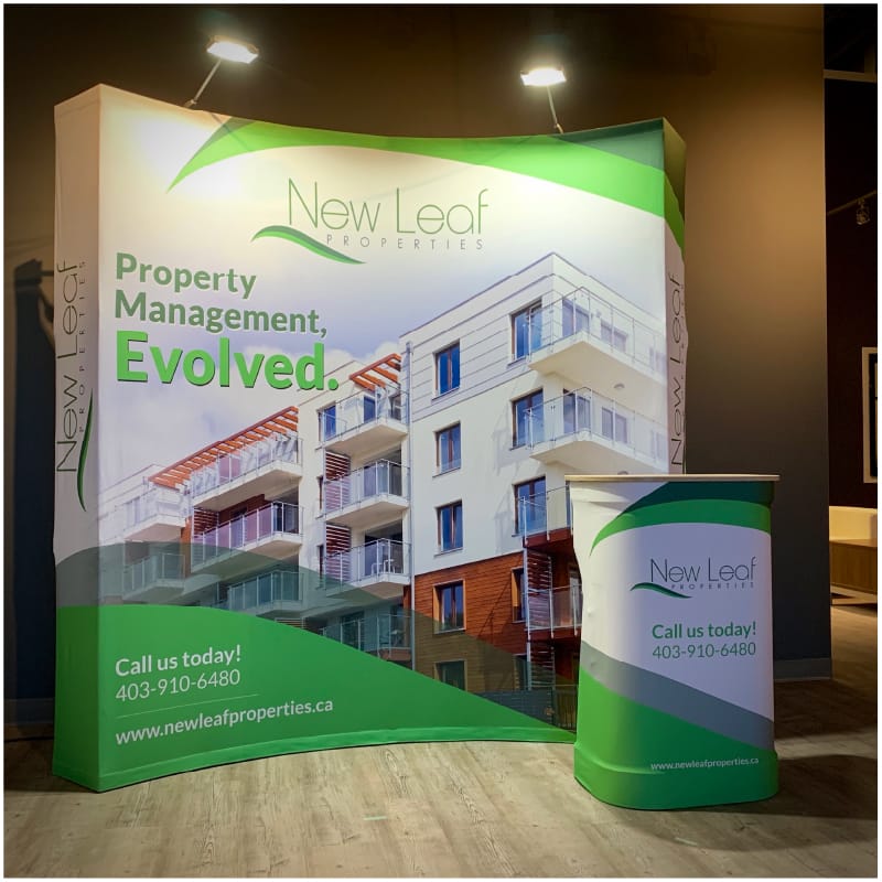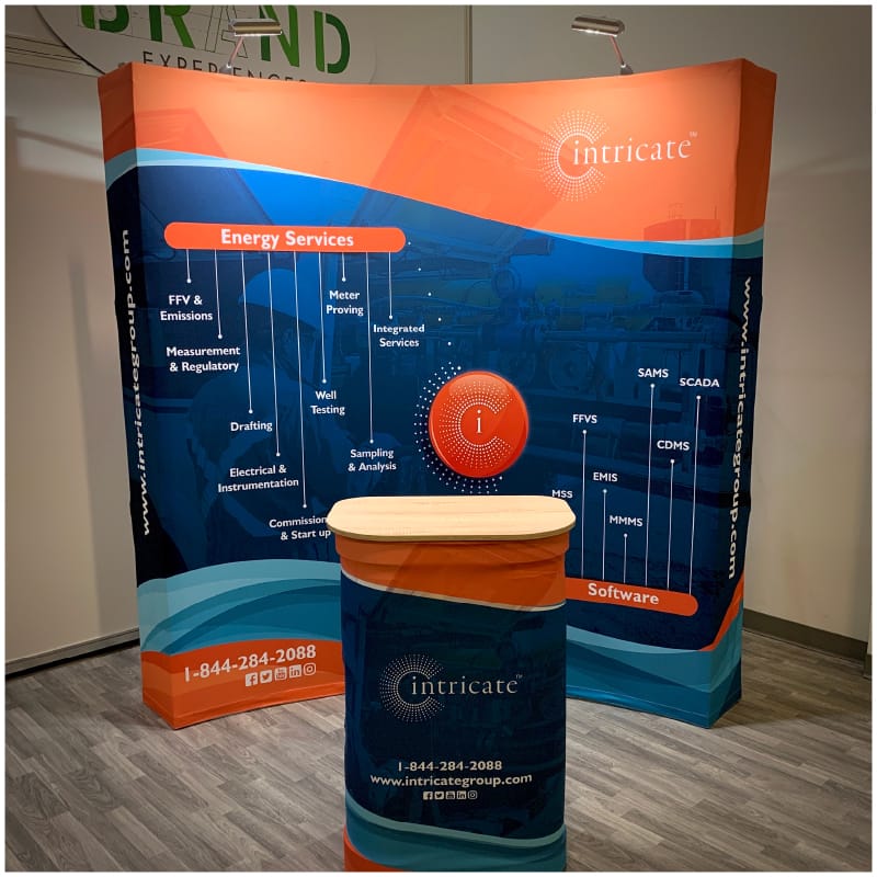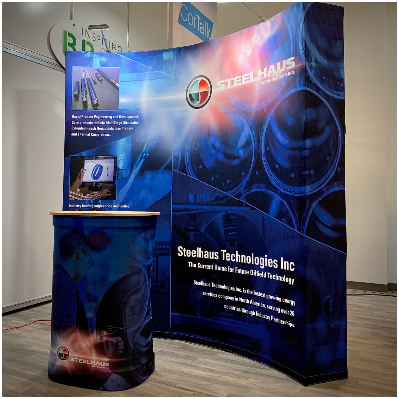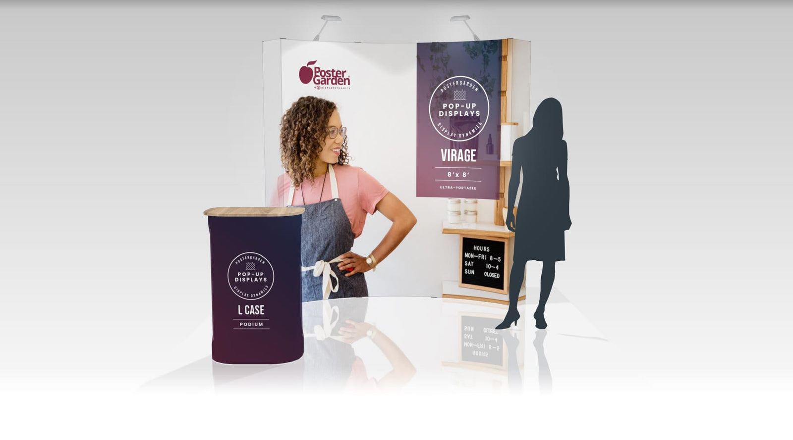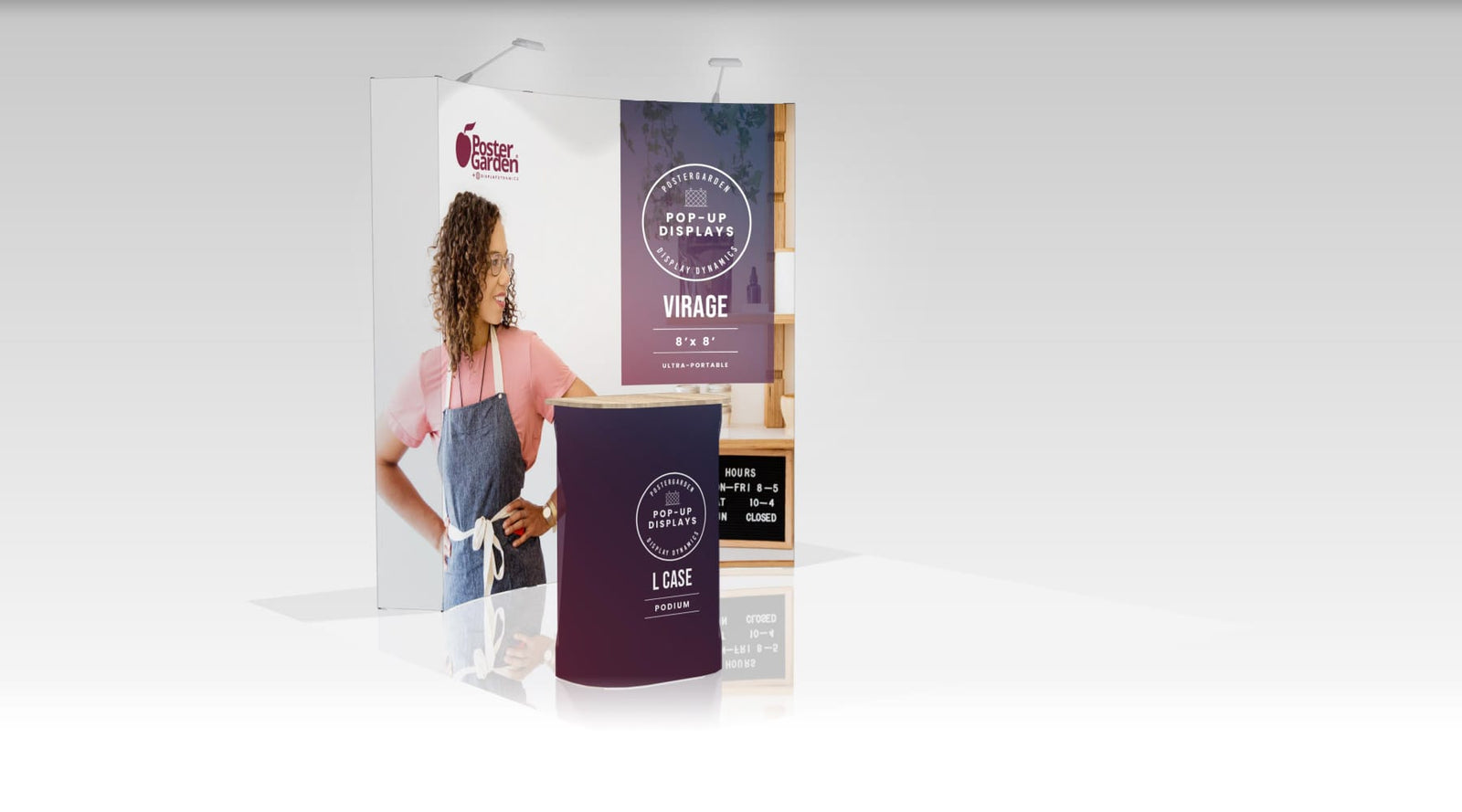 Most curved fabric pop-ups contain a series of straight angled faces that ‘act’ like a curve. The Virage boasts a durable aluminum frame with an actual curve and an ultra-smooth graphic. This vibrant graphic remains attached to the structure and is set-up in just seconds.