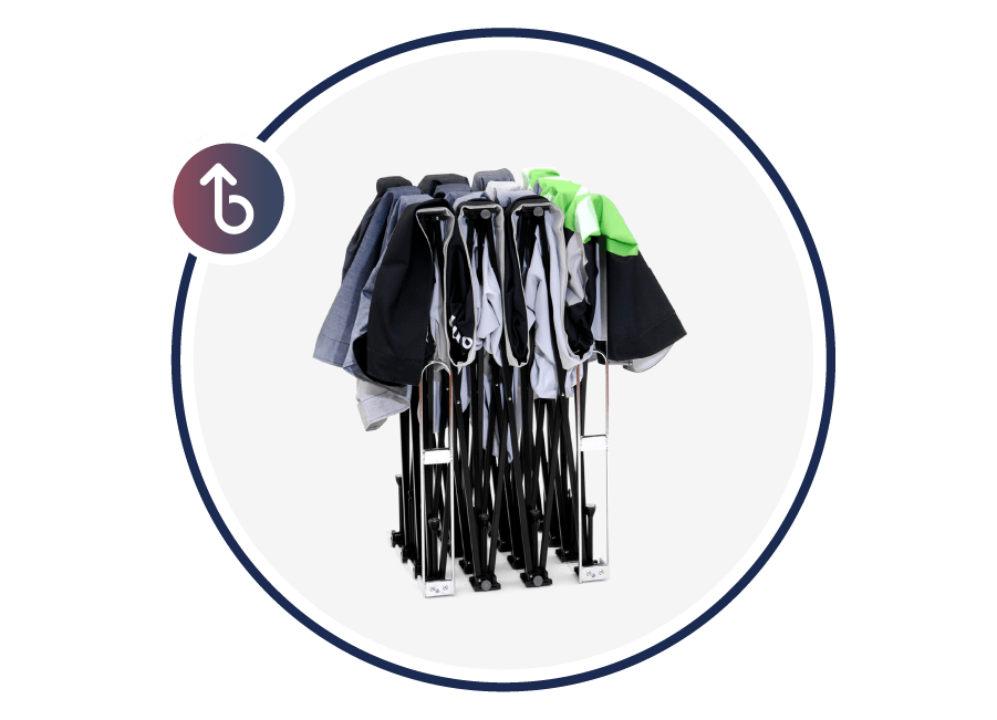 The curved frame sets up in under a minute. The magnetic connectors and snap enclosures make this durable system quick and convenient.