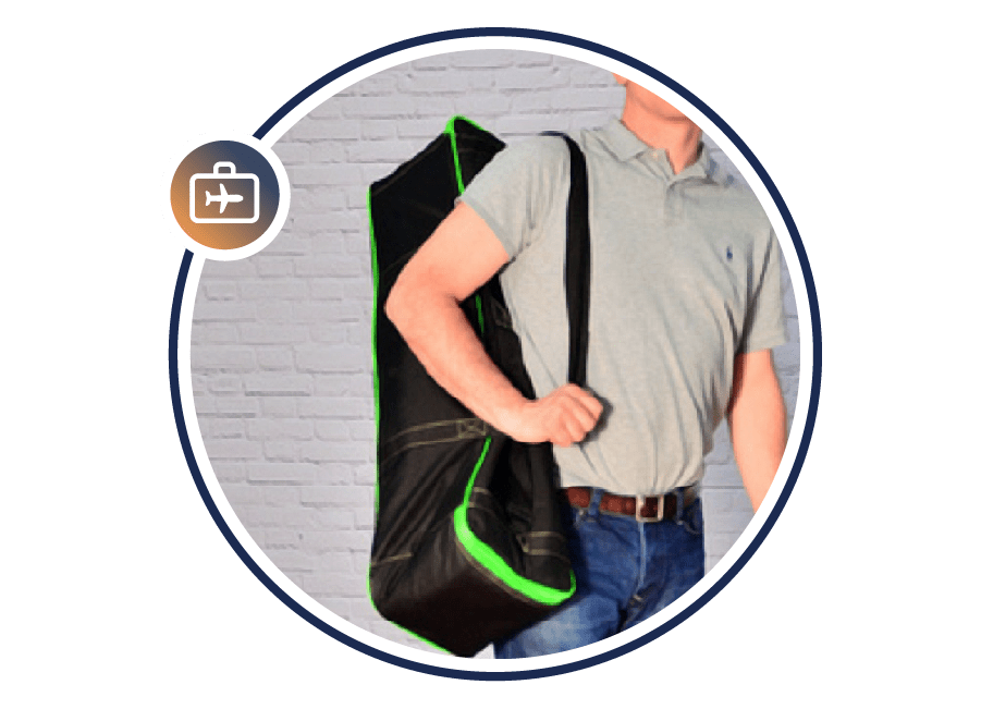 Averaging 17 lbs, this lightweight display is airline friendly and can fit into the trunk of a car. Pack it in a hard or soft wheeled case.