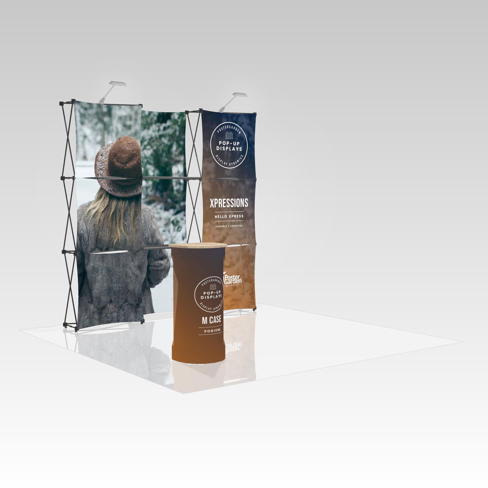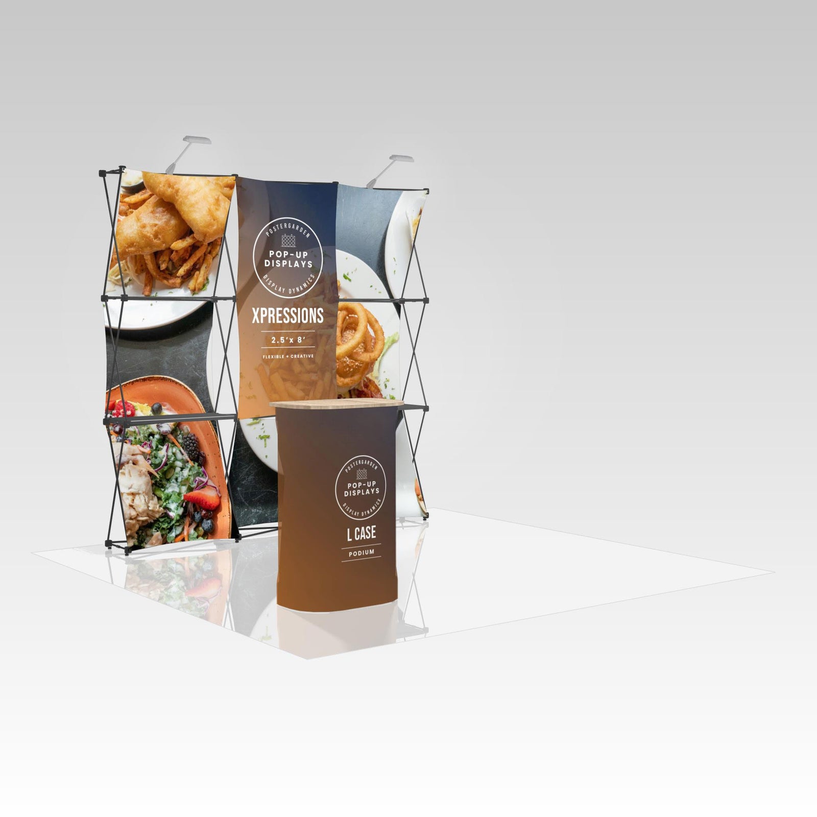 Lights, shelves, counter cases, and more. The Xpressions is perfect for product display and customization while still remaining portable.