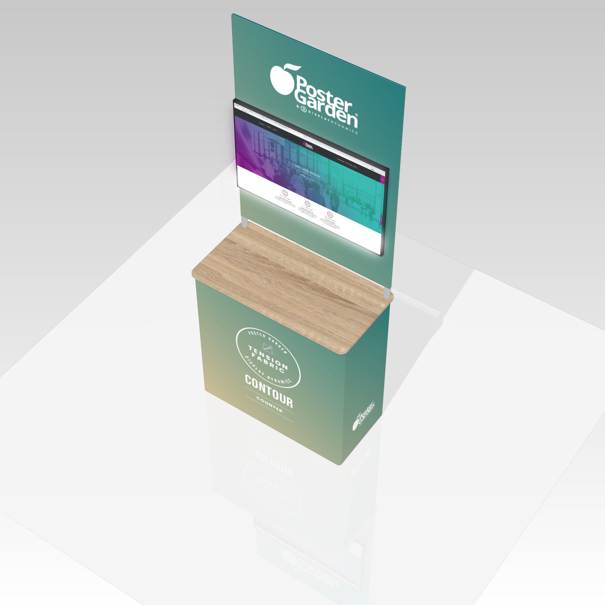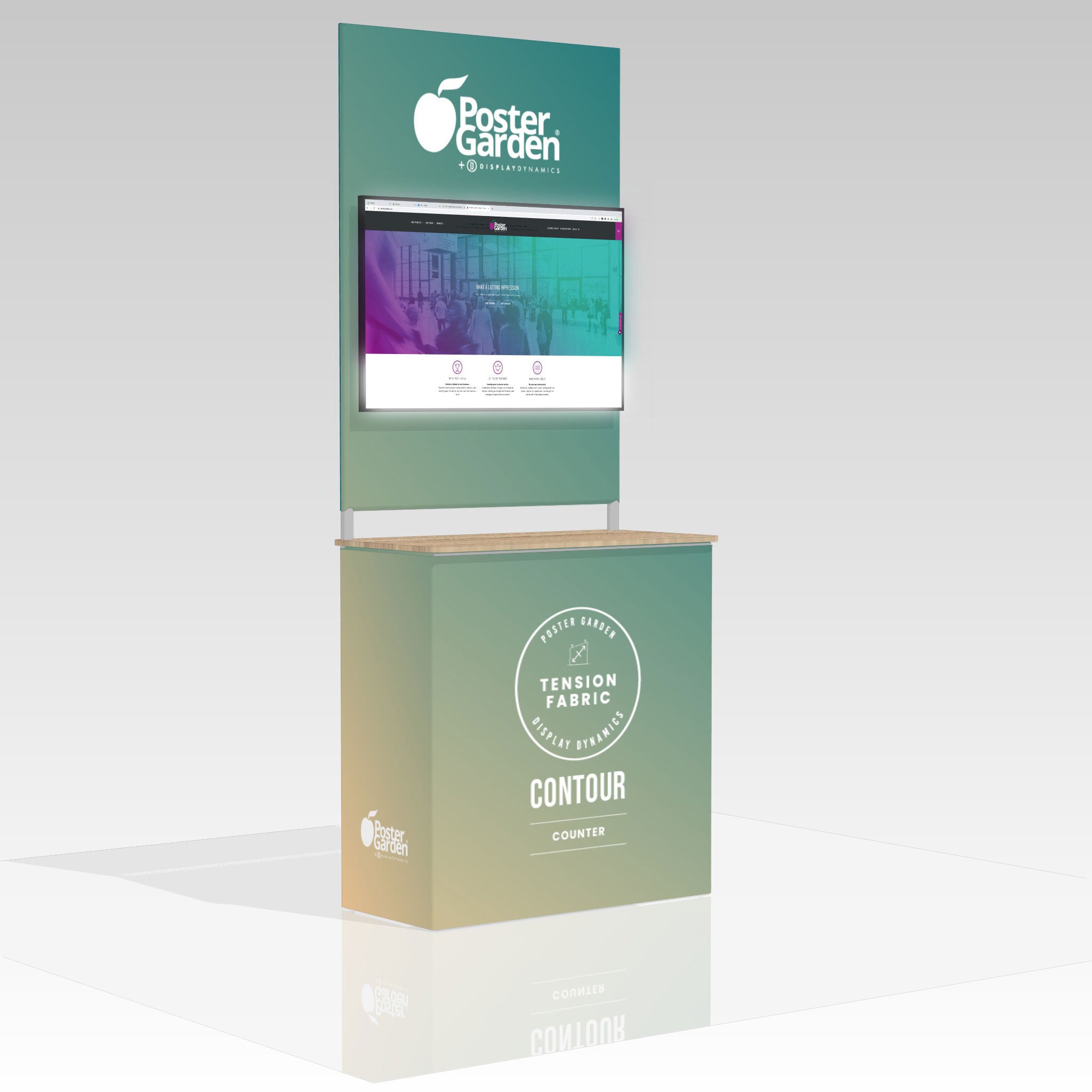Engage visitors with a lightweight and compact counter that sets up instantly and packs small. Stow away clutter with a handy interior shelf.
