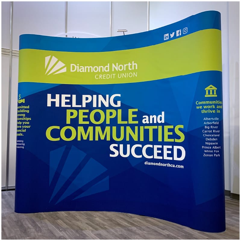 Modern silver LED spotlights ensure that your message stands-out. Convenient padded bags included to safely pack them with your display.