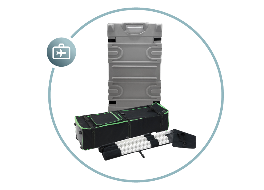 TV Stands include wheeled bags or upgrade to a durable hard case for added protection.