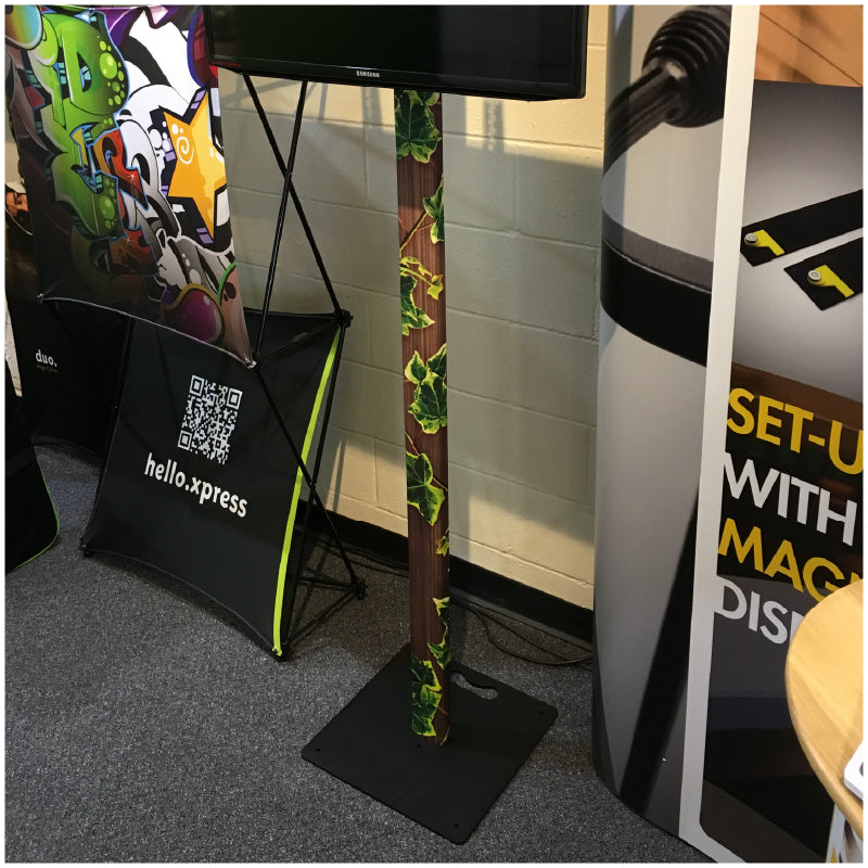 Customize the look of your TV Stand with custom printed full coverage dye-sublimated fabric graphics.