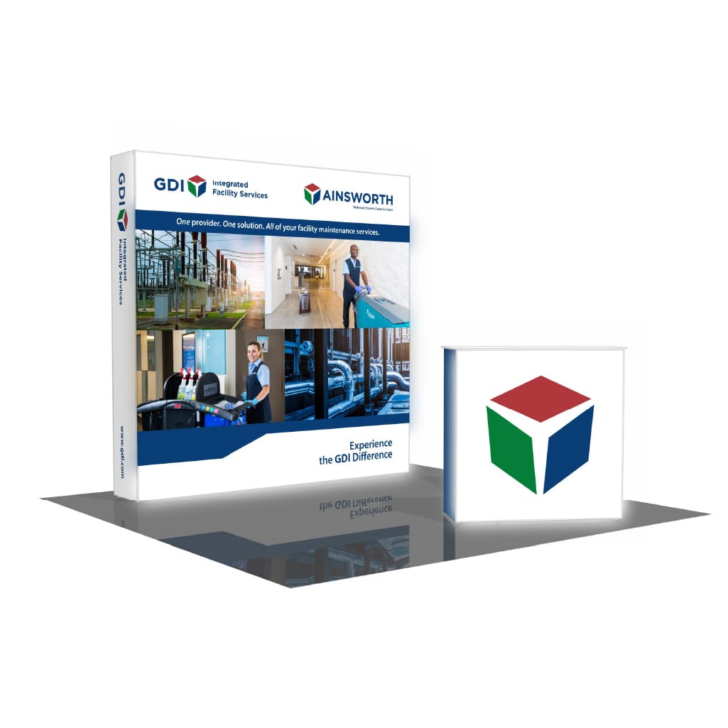- (1) Xpressions 8' x 8' Hello.Xpress w/ (4) rectangular shelves and graphics