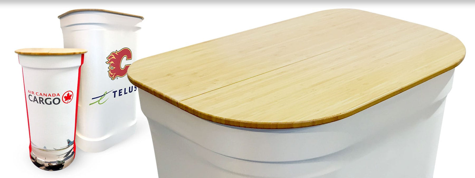 Transform the medium or large wheeled hard case into a functional branded counter with the podium conversion kit. Conversion kits include a stylish folding wood top with padded bag and a dye-sublimated fabric.