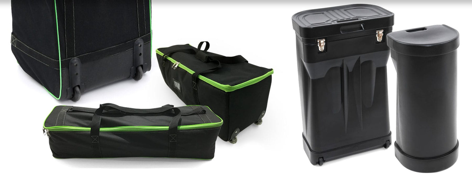 Most of our fabric pop-up display systems can be packed and transported within a convenient wheeled bag for short travel distances. For added protection when shipping your display, select a durable wheeled hard case that can also double as a convenient podium.